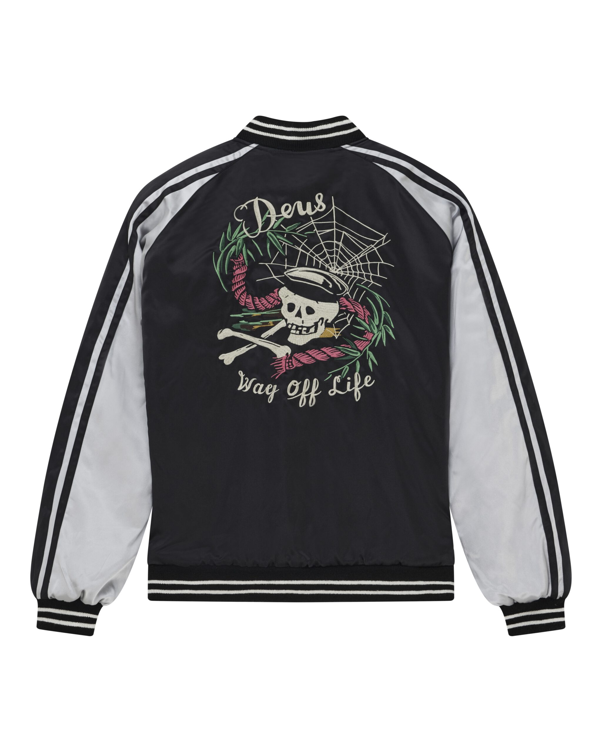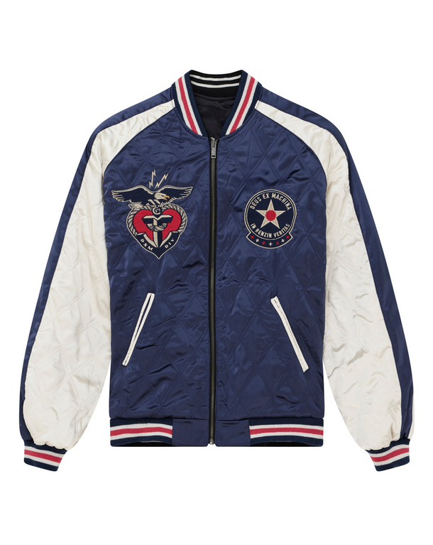 Lässige, wendbare Souvenirjacke mit Stickereien auf Brust und Rücken, aufgesetzten Eingrifftaschen,