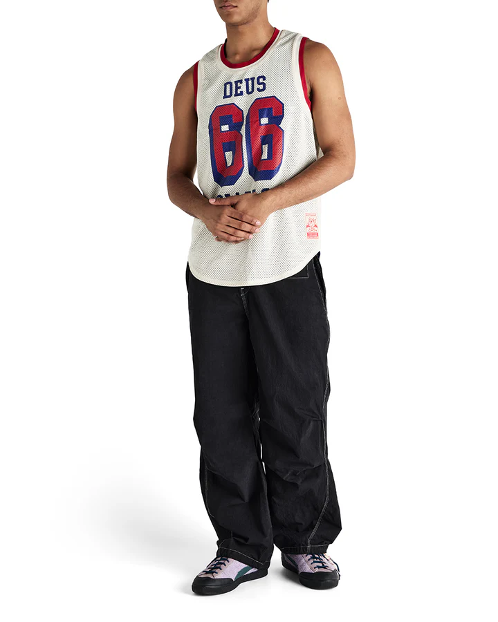 “In einer Zeit, in der Kunst, Musik und Vielfalt die neue DEUS-Plattensammlung weiterhin mit Bekleidungsideen und kreativen Ansätzen experimentiert. Fasziniert durch Unisex-Design und mutige Grafikkunst erweitert sich die Deus Records-Kollektion um Fans auf der ganzen Welt. Übergroßer passend reversibler Tanktop. DEUS Original-Kunstdruck auf beiden Seiten. Gestreiftes Trimmen am Hals und Armloch. Polyesternetzmaterial.