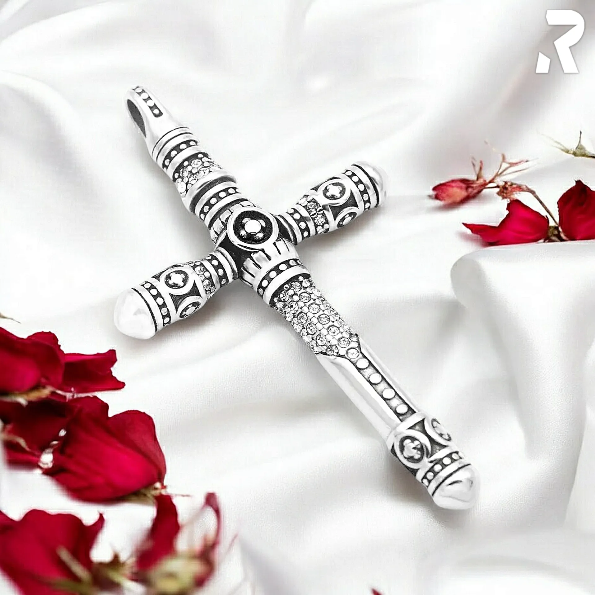 - Rockyfy Manufaktur-Spirit: Edles Kreuzdesign mit präzise gefassten, hellen Schmucksteinen.