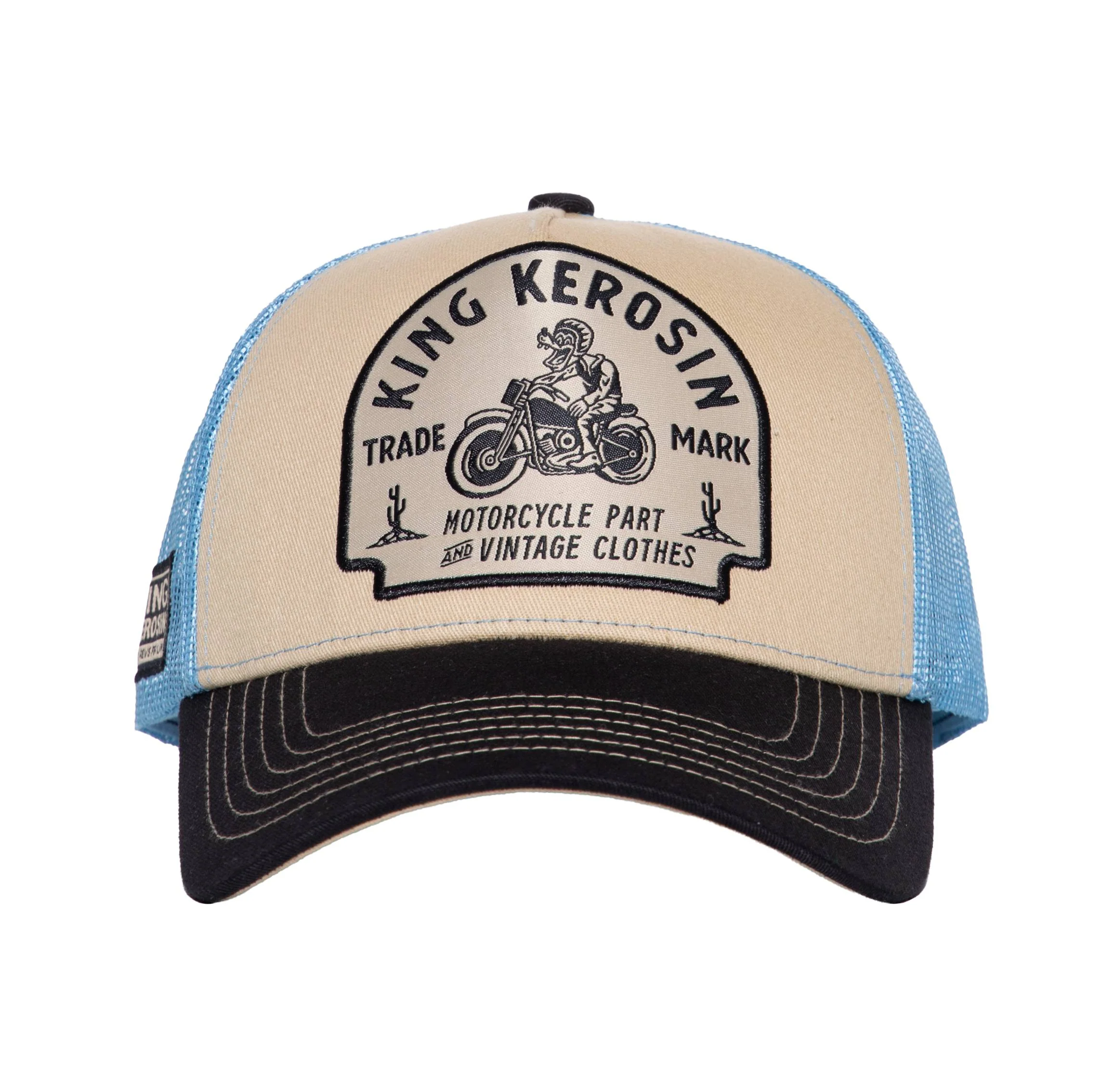 Ob Biker, Schrauber oder einfach Fan von authentischem Style – mit dieser Trucker Cap von King Kerosin setzt du ein klares Statement! Der markante Motorrad-Stick auf der Front bringt Vintage-Vibes und Wüstenfeeling direkt auf deinen Kopf. Mesh-Einsatz hinten sorgt für Belüftung, der Snapback-Verschluss für perfekten Sitz. Die Cap ist nicht nur ein Hingucker, sondern auch ein treuer Begleiter für Sonne, Fahrtwind und Abenteuer auf zwei Rädern.