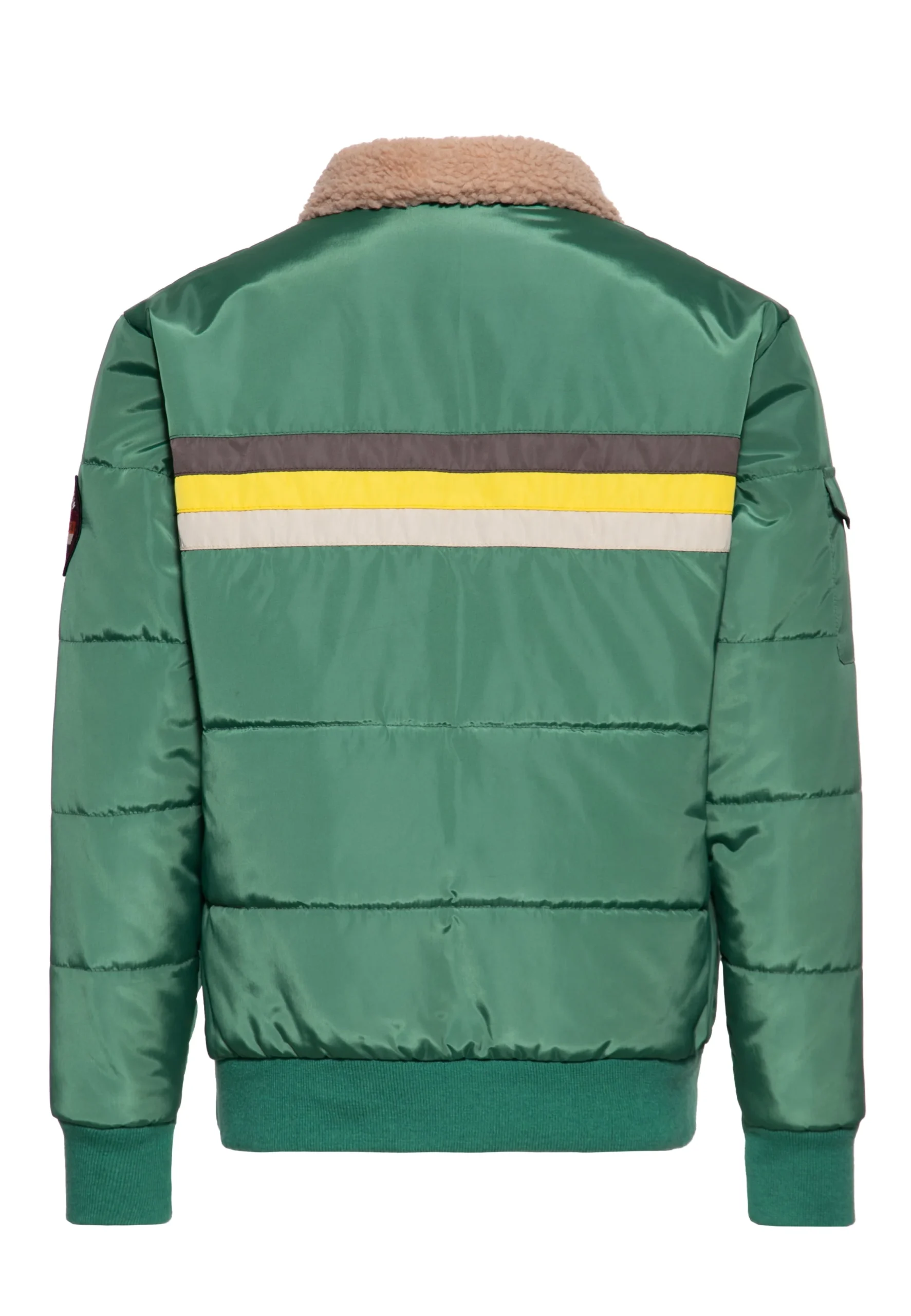 Mit dieser King Kerosin Steppjacke bist du bestens für kalte Tage gerüstet! Der Retro Look wird durch farbige Streifen auf Brust und Rücken sowie markante Stickpatches im Racing- und Garage-Stil abgerundet. Für warme Vibes sorgt der hoch schließbare Kragen mit kuscheligem Teddyfutter, während die elastischen Bündchen an Ärmeln und Saum den Komfort verstärken. Praktische Features wie Eingrifftaschen, eine Innentasche mit Klettverschluss und die Druckknopfleiste über dem Reißverschluss machen die Jacke zum idealen Begleiter – ob auf Tour oder im Alltag. Ein authentisches Piece für alle, die es sportlich und kernig mögen!