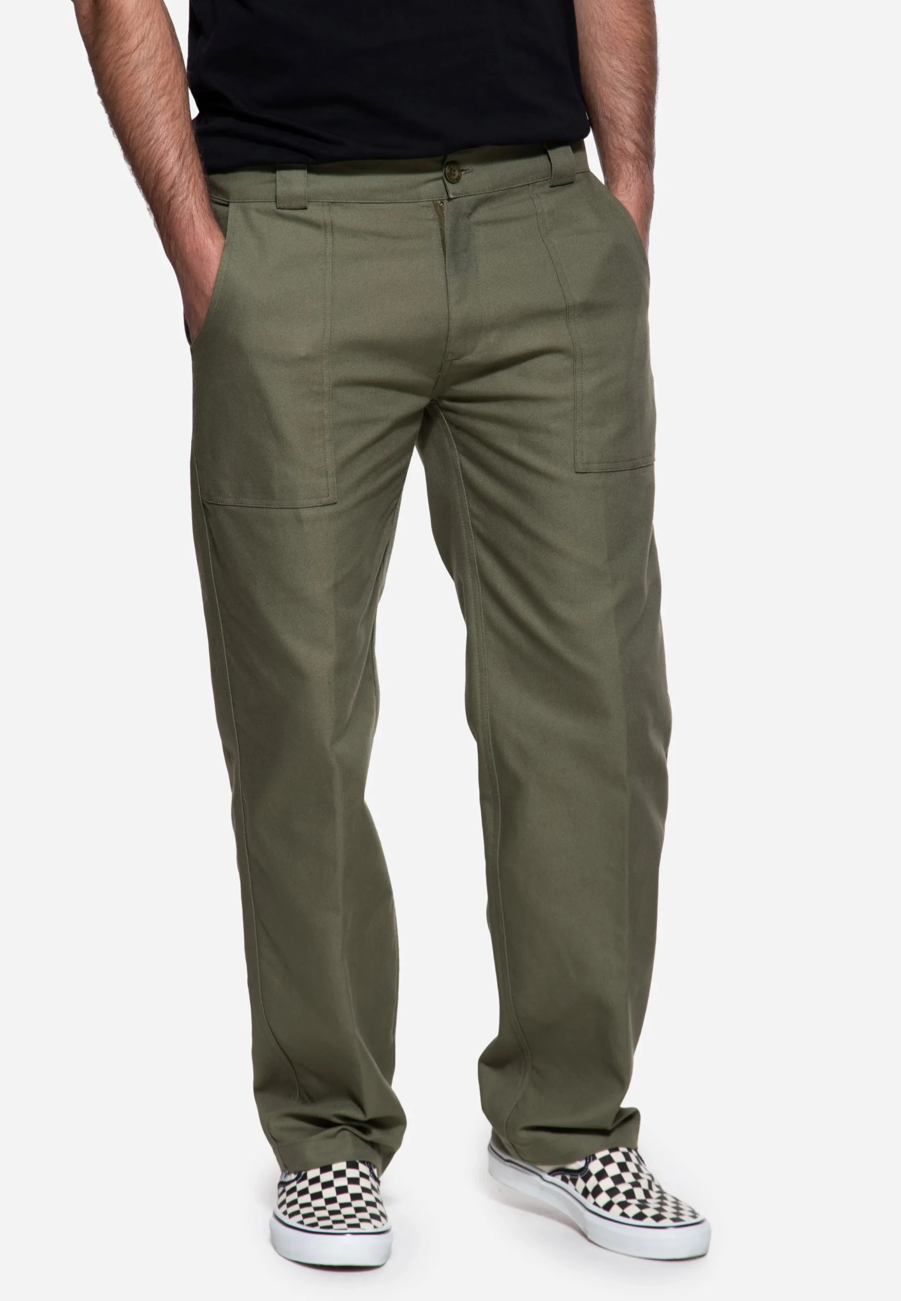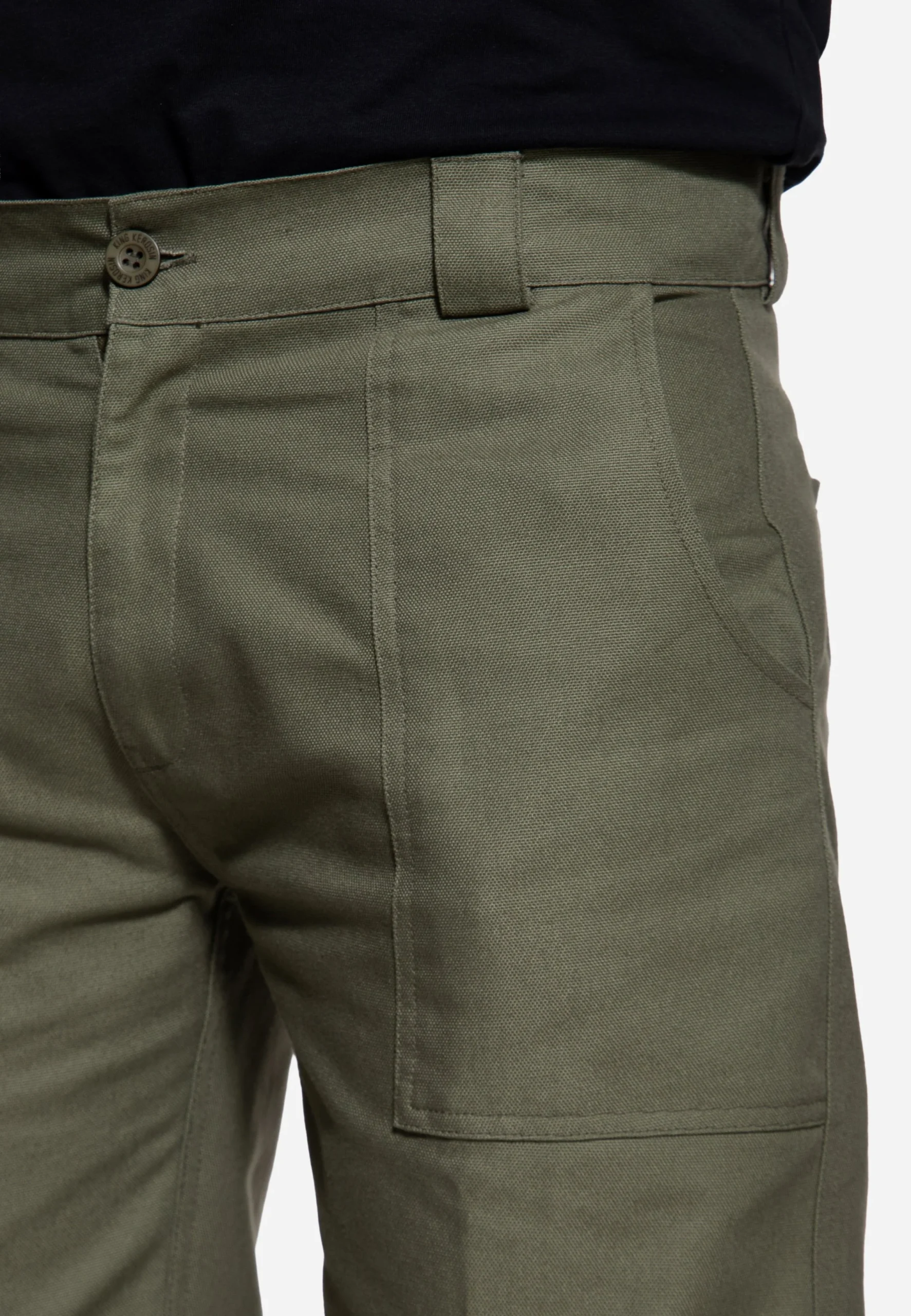 Die King Kerosin Workwear-Hose setzt auf robustes Canvas-Material und einen authentischen Look. Mit Mid Waist-Bund und Regular Fit trägt sie sich angenehm und locker. Die markanten Bundfalten vorn verleihen der Hose eine klare Linienführung und unterstreichen den Workwear-Charakter. Aufgesetzte Fronttaschen, paspelierte Gesäßtaschen mit Knopf sowie das Cinch Back-Detail runden den Style ab. Ein vielseitiges Piece, das sich sowohl im Alltag als auch im Workwear-Look perfekt kombinieren lässt.